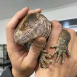 存在感抜群の大きなトカゲと暮らしてみたい方にオススメ。幼体時から育てれば人に馴れやすく、頭や手足、胴体などが太くガッシリとしていて大人になると1m前後まで成長。飼育は比較的簡単だが、暴れたときの対処は注意が必要とのこと。