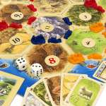 5種類の資材を産出や交渉による交換で集めながら組み合わせて拠点を拡大し、開拓レベルを競う。ドイツでもっとも権威と影響力のあるSdJボードゲーム賞の大賞を1995年に受賞した名作だ。3~4人用・所用時間60分。