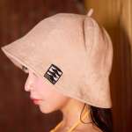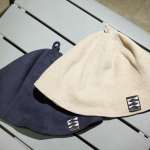 「渋谷文化進化」のロゴがあしらわれた「サウナハット」(4000円)。まりちゅうが使用したベージュのほかに黒、紺の全3色展開。店頭にて販売中。