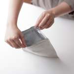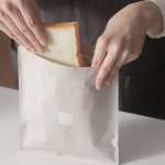 2. 袋をセット、ひらけばV字に自立し安定も。作り置き作業をサポートしてくれます