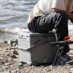 大人も座れるタフさはさすが釣具の老舗。全面に発泡ポリスチレン断熱材を採用し、中の氷も2〜3日間なら溶かさずキープ。左右どちらからでもワンアクションで開閉できる点も実に便利。