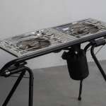 ステンレス製のトップボードが2枚付属するのでそのままテーブルとしても使えます(山田さん)