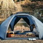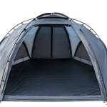 大人2人でゆったりとくつろげるドーム型シェルター。仕切り付きのインナーテントを組み合わせることによりプライベート空間を確保しつつ、広々としたリビングスペースも手に入る。