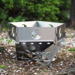 本体をくり抜いて焚き火の炎を見せる画期的アイデアのパイオニアといえばコレ。5枚の板を組み合わせて使用する焚き火台で、使う枚数により形状、高さを変更できる。