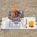 キャンプ場で焚き火をする際に芝生を痛めないために敷く難燃性のシート。たき火台シートとしてもトートバッグとしても使える2WAY仕様になっており、使い勝手が抜群に良い。