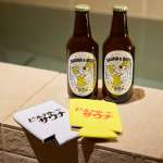 フルーティーな口当たりがおいしい「【ビールナイトサウナ】ラベルビール(奥)」990円は「【ビールナイトサウナ】クージー(手前)」で冷たさをキープ(ホワイト・イエロー)各1500円。サウナ後はしっかり水分補給をしてからビールを楽しもう!