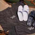 【ビールナイトサウナ】セットアップ(左)・グレー(サイズ:Free)6600円。【ビールナイトサウナ】パールギョサン(右)、ホワイト・ブラック(サイズ:M~3L)各3500円。