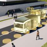 会場内外では約150台のEVバスが来場者の足になる。これらのバスには走行しな がら充電できる「走行中給電システム」が搭載され、一部の車両ではレベル4の自動運転も行われる。環境負荷の軽減に加え、ドライバーの人手不足にも対応する未来の公共交通だ。