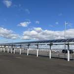 万博会場西側にある交通ターミナルのバス停屋根、約250mにフィルム型ペロブスカイト太陽電池が設置されています。この規模の設置は国内最大です(畑野さん)