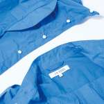 ブランドの代表アイテムのひとつで着脱可能な異素材のカバンが付いたシャツジャケット。本作は中空糸のナイロンを使用して超軽量を実現。よこ糸に綿を使うことで実現した発色の良さも魅力。