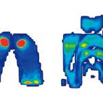 ▲体圧分布図を見るとお尻にかかる負担が「Sit Air」によって分散されることが分かる。写真左:「sit Air」なし、右:あり