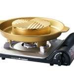 鍋と焼き肉が同時に楽しめる「よくばり」なアクセサリープレート。それぞれの調理に適した加熱ができるよう構造を工夫したほか、焼き部分でお肉やシーフードを焼くとその旨味が鍋部分にも落ちる仕組み。4月下旬入荷予定。
