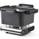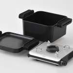 ▲「グリル」と「鍋」の2種類のプレートを取り替え可能。1台で幅広い料理ができる。丸洗いできるのも便利
