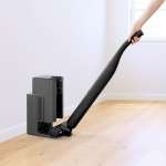 掃除後にスティックをステーション(充電スタンド)に戻すとごみを自動で収集するステーションタイプ。ステーションも掃除機本体もコンパクトで場所を取らない。