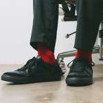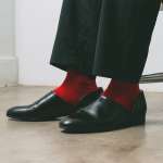 さらに一歩先を狙うなら、カラーソックスを“差し色”として取り入れるのもひとつのテクニック。たとえば、全身ブラックのストイックな装いに、赤いソックスを一点だけ。それだけで、ぐっとモードな空気が漂いはじめます。