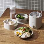 スチーマーとエッグボイラーがひとつになったコンパクトなフードスチーマー。タイマーをONするだけで、卵を茹でながら主菜や副菜を同時に加熱できるので忙しい朝などに最適。