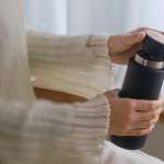 木製家具のような佇まいの真空ステンレスボトルで、フタに配したアカシアの杢の表情はどれも異なり同じボトルはひとつとしてない仕様。フタは半回転ほどで簡単に開閉可能。