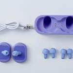 ▲イヤーピースは3サイズ付いてくる。自分の耳の形に合うものを使おう。充電台とコードも付属