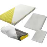 マットレスは点でやさしく腰をサポートする設計で腰がコリやすい方にオススメ。ピローは後頭部から首筋、横向き寝の肩にやさしくフィット。柔らかな肌触りで乾きやすいシーツとピローケースも付属。