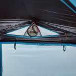 日光をブロックして気温上昇を低減するダークルームテクノロジーを搭載した新作2ルームテント。雨音を抑える二重構造のフライを装備し、1年を通して快適に過ごせる。