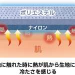 接触冷感の秘密はその裏地にある。ナイロンが肌と触れることで体表面の熱を吸収し「ヒヤッ」と涼しく感じさせてくれるのだ。