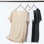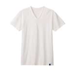 さらに、室内干し臭軽減や乾燥機OKとお手入れもカンタン。着用後のこともしっかりと練られた、まさに縁の下の力持ち。2枚組で、汗をかいた際の着替えに、翌日用と一度に揃えられるのもありがたい。チラ見え防止&スマートに着用できるVネック仕様です。
