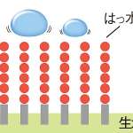 洗濯で汚れは落ちたが、はっ水基は倒れたまま。熱を加えるとはっ水基が再び起き上がり、撥水性が回復する。