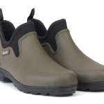最高品質の100%防水天然ゴムを使用したショートブーツ。つま先とかかとの高低差を抑えたフラットなプラットフォームソールを採用しており、履き心地も良好だ。背面部分には着脱しやすいプルタブ付き。