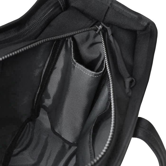 余裕のあるマチ幅で収納力は十分。折りたたみ傘やボトルの収納に便利なポケット付き