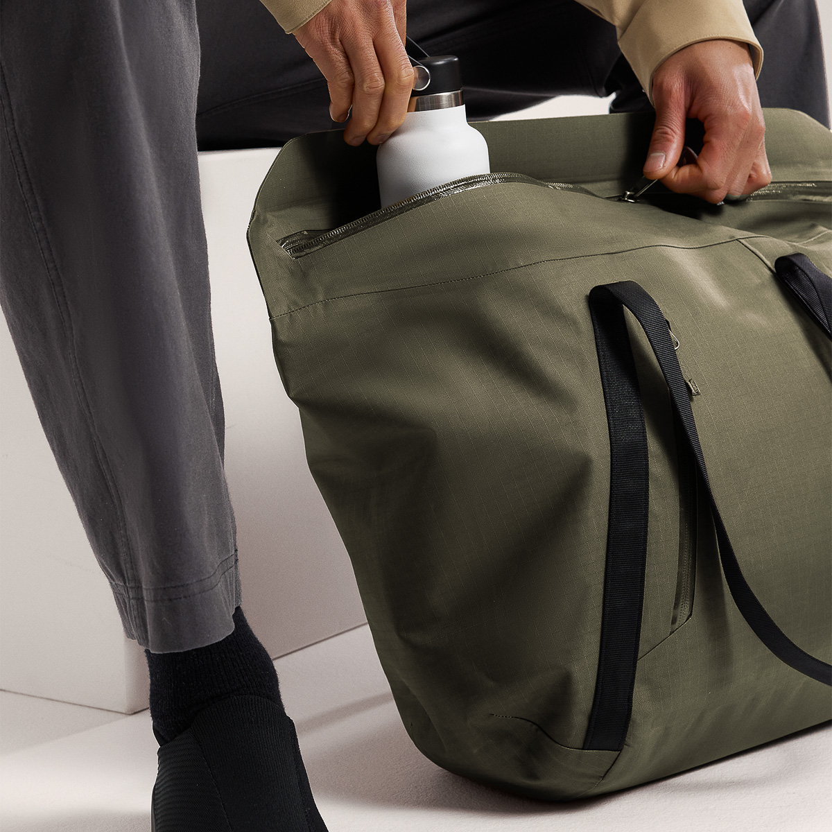 アウトドアギアの持ち運びや荷物満載の旅行まで幅広く対応できる容量30Lの大型トートバッグ。耐候性に優れた「N400r-AC²リップストップ」素材を採用するほか、底にはパッドもレイアウトされており中身を衝撃から保護してくれる。