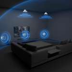 Dolby AtmosとDTS:Xに対応。サウンドバー本体から着脱可能な充電式リアスピーカーを設置すれば7.1.4chの立体音響を手軽に構築可能。サブウーファーによる迫力ある低音も魅力だ。