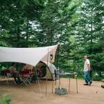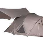 テントとタープのセットです。今年価格が改訂され、コスパが良くなりました。独自のフレーム構造で立てやすくソロでもデュオでも使えます(大石さん)
