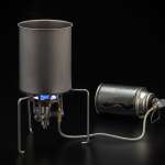 軽量&コンパクト収納を実現し、山岳使用に対応したCB缶モデルの液出し分離型ストーブ。本体は重量約195gで収納時は極めてコンパクトになる。