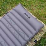 空気を入れると厚さ約7cmになり、高いクッション性と保温性を発揮してくれる。寝袋の下に敷くだけでなくキャンプ用ベンチや車中のクッションとしても使える。