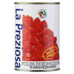 名産地として知られるカンパーニャ地方産のトマトから、さらに選りすぐった高品質のものを使用。トマトの味が濃厚でパスタソースやスープなどさまざまな料理に使いやすい。