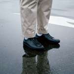 いち早くビジネスでの雨対策ニーズを汲み取り、数年前から定番としてレインドレスシューズを展開しているのがこのグリーンレーベル リラクシングです。今作はアッパーに撥水加工を施した牛革を採用。なので見た目はレザーシューズそのもの。デザインはオーセンティックな外羽根式のプレーントゥスタイルを落とし込んでいるのでビジネスシーンにおけるスーツからジャケパン、さらには休日のキレイめな装いにも対応できる幅の広い一品です。