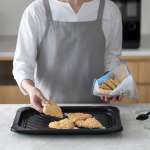 “おまかせグリル”機能でヒートグリル皿に並べるだけで調理可能。裏返しも焼き網も不要という手軽さがウリで冷蔵と冷凍が混在していてもOKというスグレモノ。さらに市販の冷凍フライに油を付ければ揚げ物も調理できる。