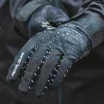 撥水加工を施したレイングローブは数多く市場に出回っていますが、本作はさすがサイクリスト仕様といったもので手馴染み・フィット感の良さは圧倒的。手の甲側は伸縮性の高い素材を使用しつつも超撥水加工を施しており、水の浸入を防いでくれます。手の平側にはシリコンプリントがあしらわれ、濡れても滑りにくいグリップ力を実現。指先にまでプリントを施してあるので、指を使ったブレーキングも快適です。手元が滑ってしまうと大きな事故につながる危険性もあるので、こういった信頼感のあるレイングローブがひとつあるだけでも安心感はかなり変わってくるはず。