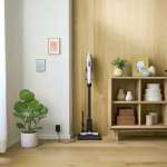 2ローラーで軽快に掃除できる最新モデルとして非常に面白い。電源を入れると非常に軽く、滑るように動かせます。隙間ノズルなどを取り付けることで高い場所の掃除もOK