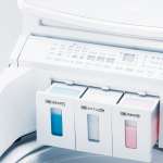 ▲洗剤の自動投入に対応。“汚れはがしコース”用に花王と共同開発された専用剤も入れられる