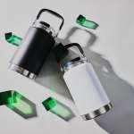 さらに、ウォーターボトルに加えて、アイスペールとしても活用OK。スポーツシーンや家族一緒に観戦するなんてシーンで冷たい氷があると段違いに快適に過ごせますよね。持ち運びに便利な、可動式ハンドルも装備。カラーはホワイトとブラックの2色展開です。