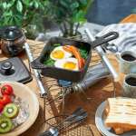 ▲蓄熱性に優れたスキレットは直火・IH対応で屋内外問わず使用可能。無水調理もできる