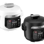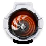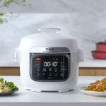 圧力機能付きのコンパクトな電気調理鍋。鍋底から自動で食材を混ぜる「かきまぜパドル」を搭載し、幅広い調理に対応。13種類の調理モードを備え、予約調理も可能。容量3L。