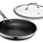 中心部は高い熱伝導性を持ち、表面は特徴的な六角形のステンレス突起のおかげで焦げ付きにくく、しっかり焼き上げる。ステンレススチールがベースで耐久面も申し分なし。26cmのほか20cm、30cmもラインナップ。