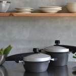 見た目にも優れた圧力鍋は珍しい! 取っ手をスライドするだけでロックがかかるので蒸気が漏れる心配もなく使い勝手にも大満足(松井さん)