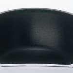 ▲内部は卵のような曲面加工が施され、鍋全体を均一に加熱・対流する。10年間のメーカー保証付き