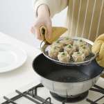 ▲脚付きだから食材がお湯に触れずシュウマイもふっくら。持ち手も付いて取り出しやすい