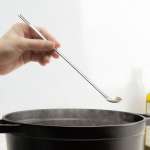 味見用スプーンと火通りを確認するフォークが両端に付いた1本。小ぶりサイズなので食材の形を壊さずに使用できる。持ち手が長く調理中に手元が熱くならないのも助かる。
