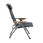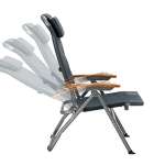 ▲人間工学に基づいた4段階リクライニング式の背もたれは座ったままでも操作できる快適仕様