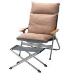 オットマンとスエードクッションを標準装備した快適性重視のリクライニングチェア。ワイド設計で安定感も高く、ゆったりと体を預けてくつろげる。